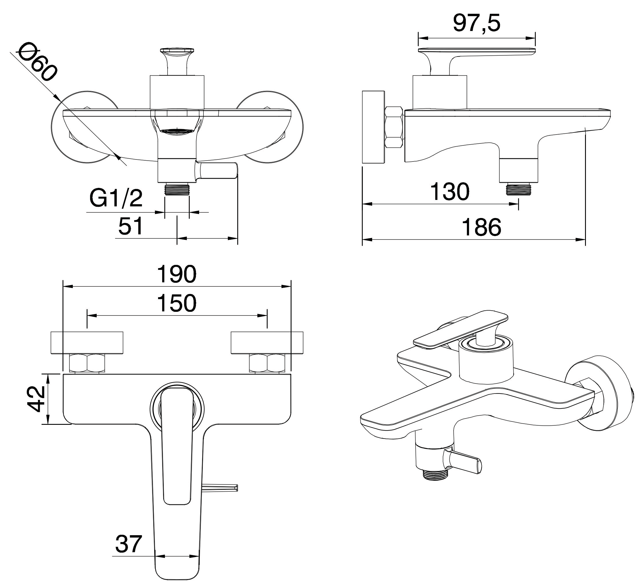 | Оснащение: | Эксцентрики, отражатели, настенный держатель, душевой шланг, душевая лейка |